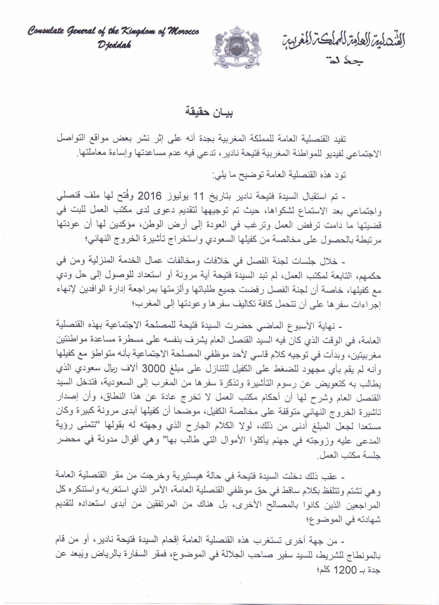 Morocco In Saudi Arabia On Twitter بيان حقيقة من القنصلية العامة بجدة بخصوص فيديو المواطنة المغربية فتيحة نادير المقيمة بالمملكة العربية السعودية